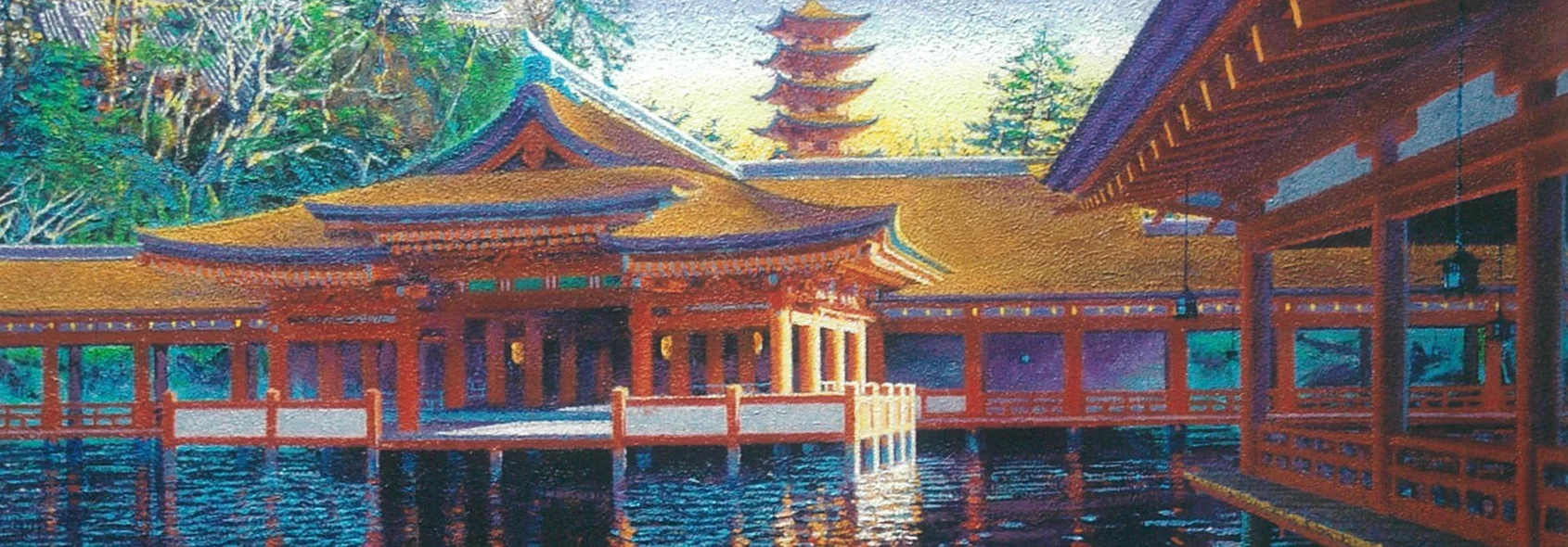 宮島のスケッチから始め、その後島並を追って西瀬戸自動車道沿いに四国・今治城の取材に至りました。神々の創りたもうた美しい自然の中での人間の造営、それをとりわけ建造物にみると、その造形表現に大きな違いがあることに改めて気づかされました。それは木の厳島神社に対し、島々に架かる橋は鉄であることの違いでした。後者は時に残酷な景色を呈しています。