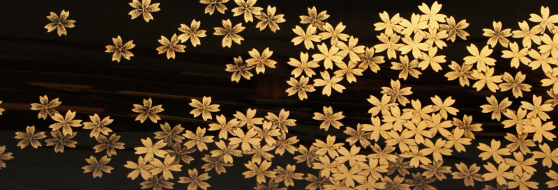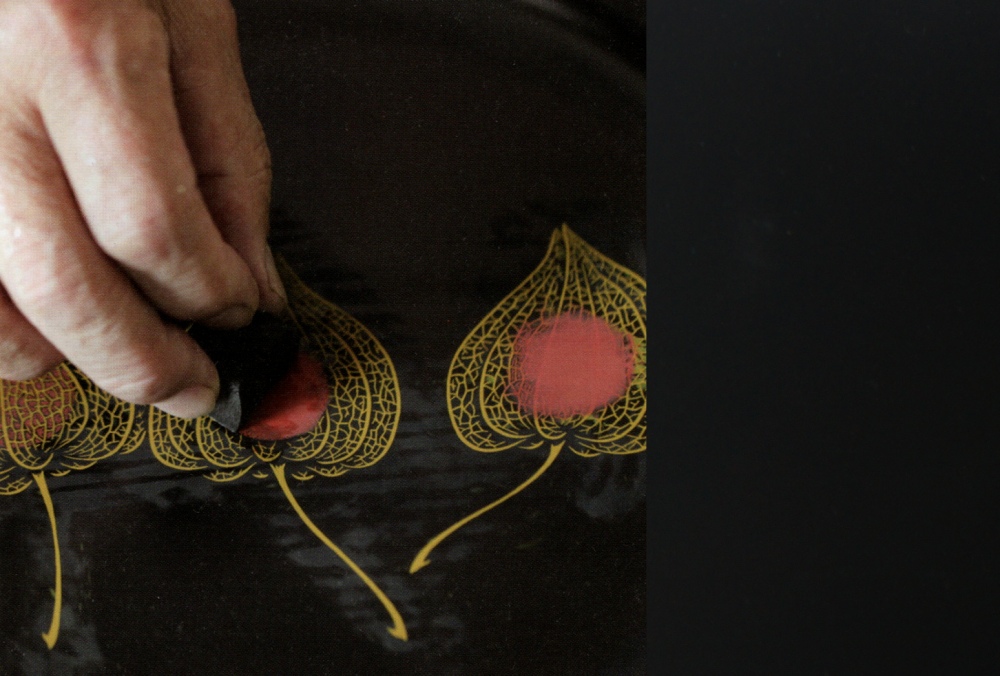 「積層」の素地と「往復彫り」に加えて、蒔絵を併用する事もある。