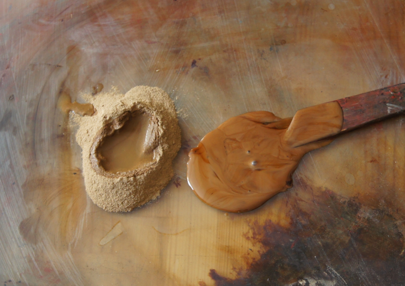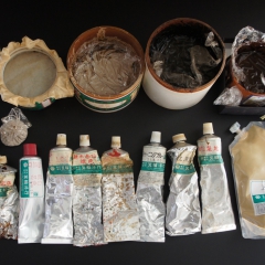 I applied jinoko-sabi (coarse-grained base paste) after tonoko-sabi dried on the box. Generally, I apply the base paste once a day.